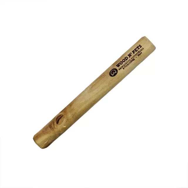 É um tipo de madeira que não soltar pedaços e farpas perigosas. E os pedacinhos que sairem conforme o cão roer, farão bem para ele. A celulose que contém na madeira ajuda na digestão do seu pet! E é finalizado com óleo de coco que ajuda a atrair seu pet, além de também trazer benefícios!